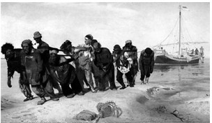 大学生模仿名画《伏尔加河上的纤夫》拍摄的毕业照