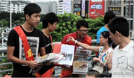 昨天上午,来自福建工程学院国脉信息学院红十字会、福建师范大学体科青年志愿者协会、福建信息职业技术学院博能社的同学们,来到鼓山、宝龙、五一广场等各个地点,希望能够募集到更多的钱。当天,80多名同学共义卖出了1020份报纸,募捐善款8179元,全部转交给了周世和,作为他姐姐的治病钱。