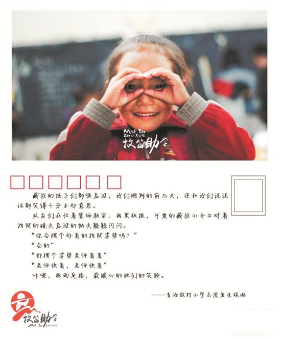 明信片上的所有照片都是“牧笛助学”成员在支教过程中拍摄的。“照片配上对应的支教志愿者日记,重现了支教时的酸甜苦辣,更直接与大家分享了支教背后的故事。”牧笛助学志愿者福建医科大学的大三学生谢钰莲介绍,在众多照片中,成员们共同选取了最具特色的36组图文,制成明信片进行义卖。