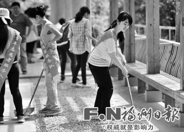 昨日上午9时许,省人民医院的志愿者列队来到文林山革命陵园,在烈士墓前庄严宣誓、献上鲜花。随后,他们拿出随身携带的蓝色塑料袋,将周边散落的垃圾拾起,开展环保志愿者活动。不远处还有福建工程学院的学生在清扫路面,他们告诉记者:“前来扫墓的市民都很自觉,垃圾不多。”