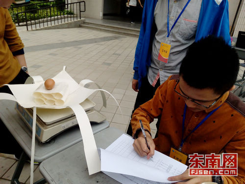 选手们正在制作鸡蛋缓冲模型。林雪美摄