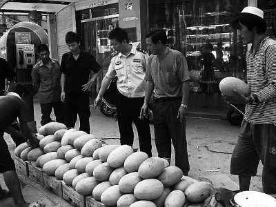 2009年7月15日,陈飞在琯头镇福鑫路口巡逻时,发现两名外地男青年在路边摆摊卖哈密瓜,神情十分沮丧,陈飞从他们的交谈中听出,这两名青年应该是遇到了生活上的困难。该怎么帮忙呢?陈飞顿生一计。