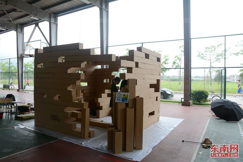 福建工程学院24小时建造大赛 瓦楞纸、竹子搭建“蜗居”