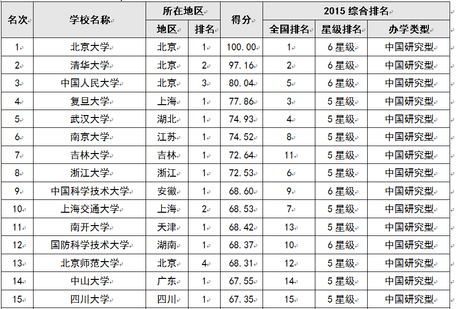 2015中国大学毕业生质量排行榜 北京大学雄霸榜首
