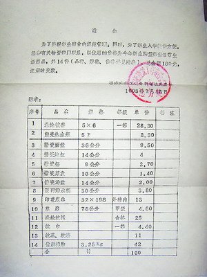 “录取通知书如同A4纸一般大小,只有一页,水红色。造型简单,几乎没有装饰。”尽管过去了二十多年,但想起当年的那张录取通知书,郑金汉记忆犹新:“上面铅字打印着我被财经专业录取。”有趣的是,当时录取通知书还附有一张日常生活用品代购清单,包括热水瓶、搪瓷杯、床单等14件物品,总价160元。