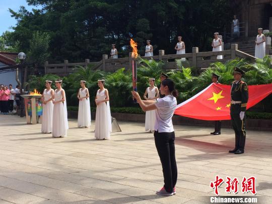 第一届全国青年运动会在福州马尾罗星塔举行圣火采集仪式。 周恺妍 摄