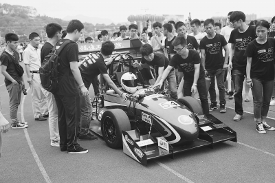 近日,福建工程学院FSAE名城车队举行2015新车发布会。该车队成立于2013年12月,是一支学生自主设计并制造方程式赛车的创新型科创团队,今年10月将第二次参加中国大学生方程式汽车大赛,与国内外九十余支赛车队伍同台竞技。 林姗 王圆圆 摄