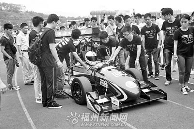 福州晚报讯 紧张的比赛、飞驰而过的赛车、挥动的信号旗、激动的观众……昨日,一款由大学生自己设计、制造的福建工程学院名城车队54号赛车正式发布,吸引了众多同学围观。