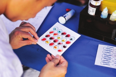 一位医生正在检测献血者的血型