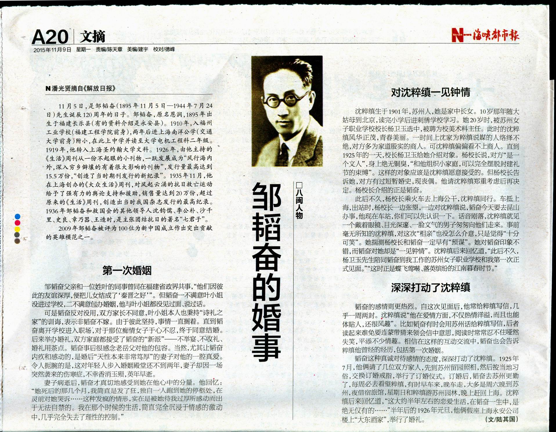 《海峡都市报》2015.11.9:韬奋的婚事