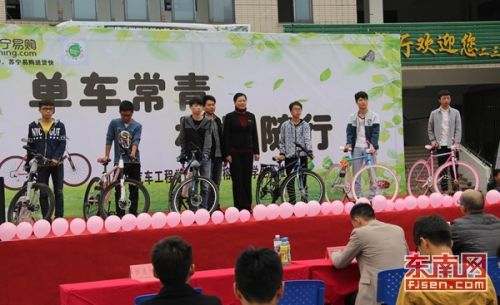 该活动由福建工程学院机械与汽车工程学院与榕城大学生公益联盟联合开展,将停放在校园无人认领的自行车重新喷漆,检修合格后,免费赠予大一的新生们。