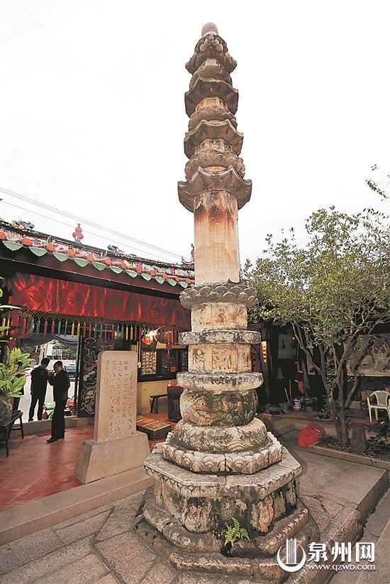 “幢”意指旌幡,原本是我国古代作仪仗用的以羽毛为饰的一种旗帜。佛教传入中国以后,佛教徒在长筒圆形绸伞上写经叫“经幢”,为了便于长久保存,又将经文刻于石柱上叫“石幢”,后来也被世人统称为“经幢”。据《佛教大辞汇》所述,“陀罗尼”是梵语,译为能持,大致是“持善不失,持恶不生”的意思。桃源宫的陀罗尼经幢建于北宋天圣三年(1025年)。据记载,天圣年间南安丰州有一位姓葛的富人去世,按照当地的风俗,其妻陈二十二娘就在桃源宫内为其竖立陀罗尼经幢,替亡夫祈求冥福。所以,这座经幢实际上是为超度亡者而建的。