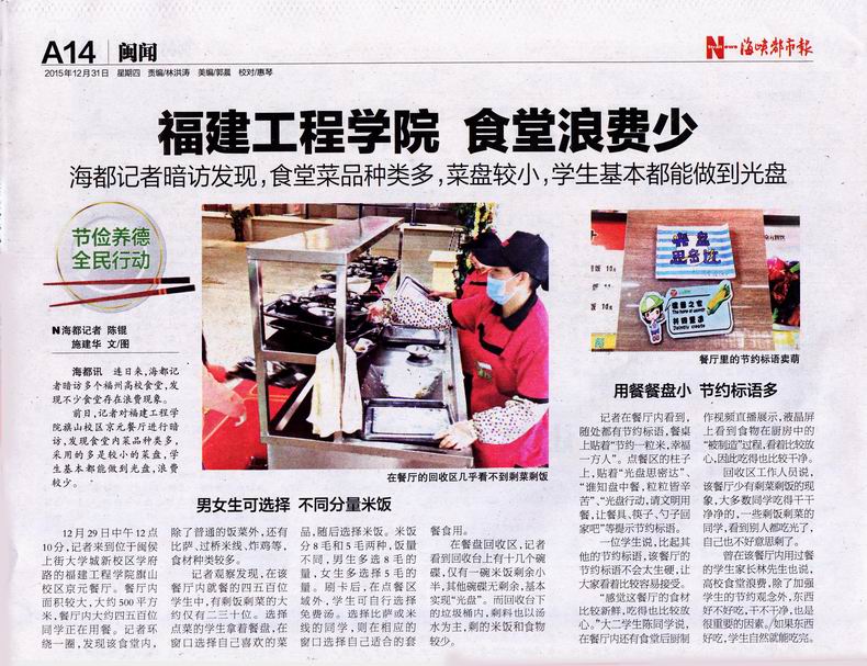 《海峡都市报》2015.12.31:福建工程学院 食堂浪费少