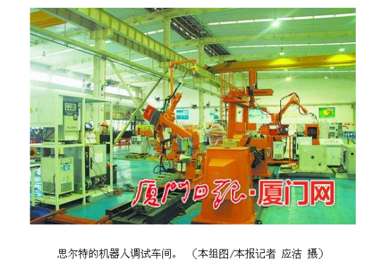 去年,全市首个机器人及数控技术应用研发平台在集美成立,这个有指标意义的研发平台由思尔特和卫浴行业大佬路达、机器人领军企业ABB公司一起组建,首先在卫浴五金的抛光、打磨环节进行“机器换工”试水,促进精益生产。在公司董事长孙启民看来,“机器换工”不仅仅意味着用机器替代人工作业,“它是一个系统概念,涉及所有生产环节的变革。”在思尔特,共有200多名研发工程师致力于为不同的制造企业提供智能化解决方案,经过多年发展,思尔特拥有60多项国家专利技术、至今已累计制造3000多套自动化装备,合作伙伴包括中联、厦工、长城汽车、通用五菱等知名企业。