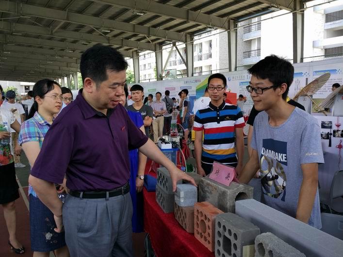 吴仁华书记等校领导在各个展区驻足观赏,与作品讲解的同学进行互动交流,详细询问有关情况,都对同学们的创新精神和实践能力给予充分肯定。部分学生家长带着孩子前来参观和体验,为我校学子的创造能力惊叹折服,展示的各类作品成了家长现场说教的好教材。