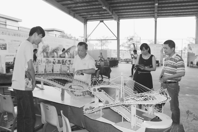 6月9日至11日,福建工程学院举办创意·创新·创业成果展,共展出在校生的108件创意设计作品、57件科技创新作品和12个创业项目。图为学生在演示创意人行天桥——《环》。 游笑春 摄