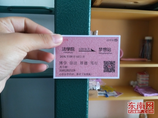 东南网9月10日讯(本网校通社大学生记者 林雪美)“欢迎来到福建工程学院,从‘法学院’开往‘梦想站’的火车在此发车,请保管好您的火车票。”9月10日,闽工院法学院为迎接新生,鼓励16级新生重新出发,珍惜大学四年时光,努力实现自己的梦想,特意设计出“梦想火车票”。