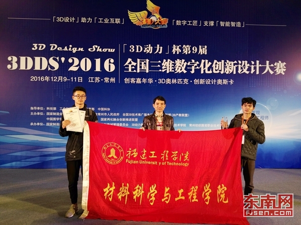 东南网12月13日讯(本网校通社大学生记者朱若含)12月9日至12日,2016年第9届全国三维数字化创新设计大赛总决赛暨3D大会3DDS'2016(3D Design Show'2016)在江苏省常州市盛大举办,本届大赛工业与工程设计大赛方向特等奖遗憾空缺,福建工程学院材料科学与工程学院“FREEDOM”团队(成员:李秋垒、杨锶豪、陈振旭、原琛,指导教师:伊启中)的作品“FDM新型3D打印机”荣获该方向全国一等奖。