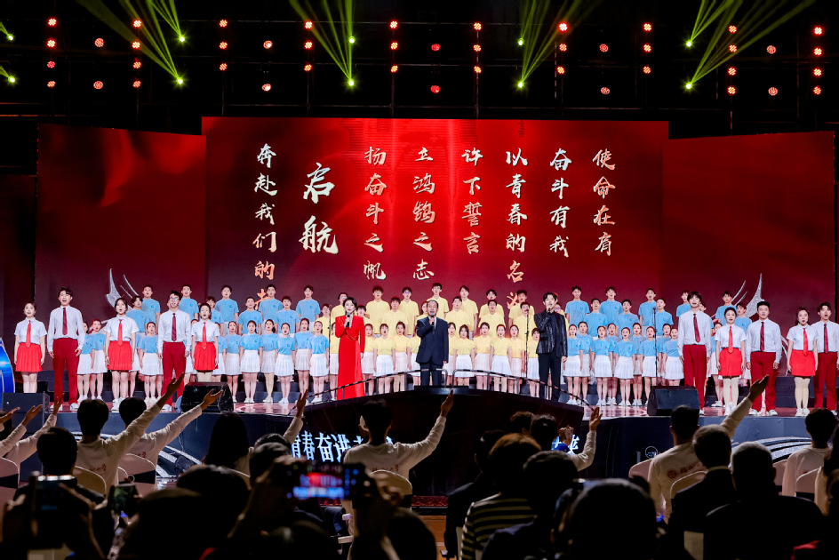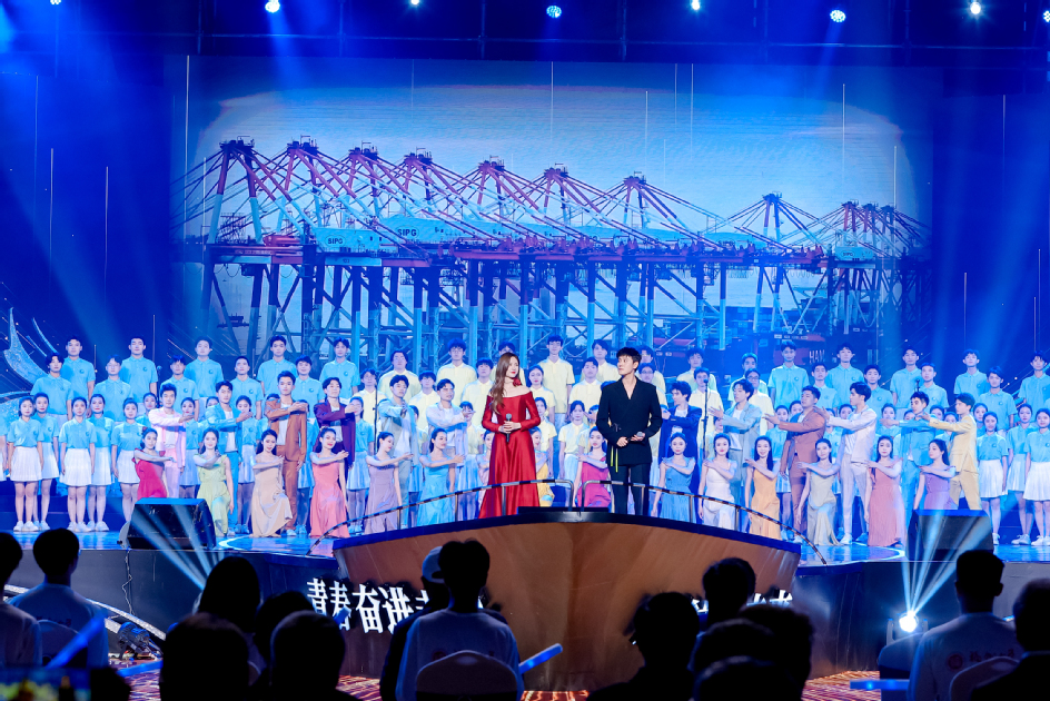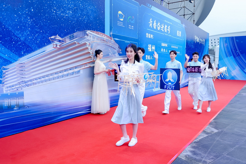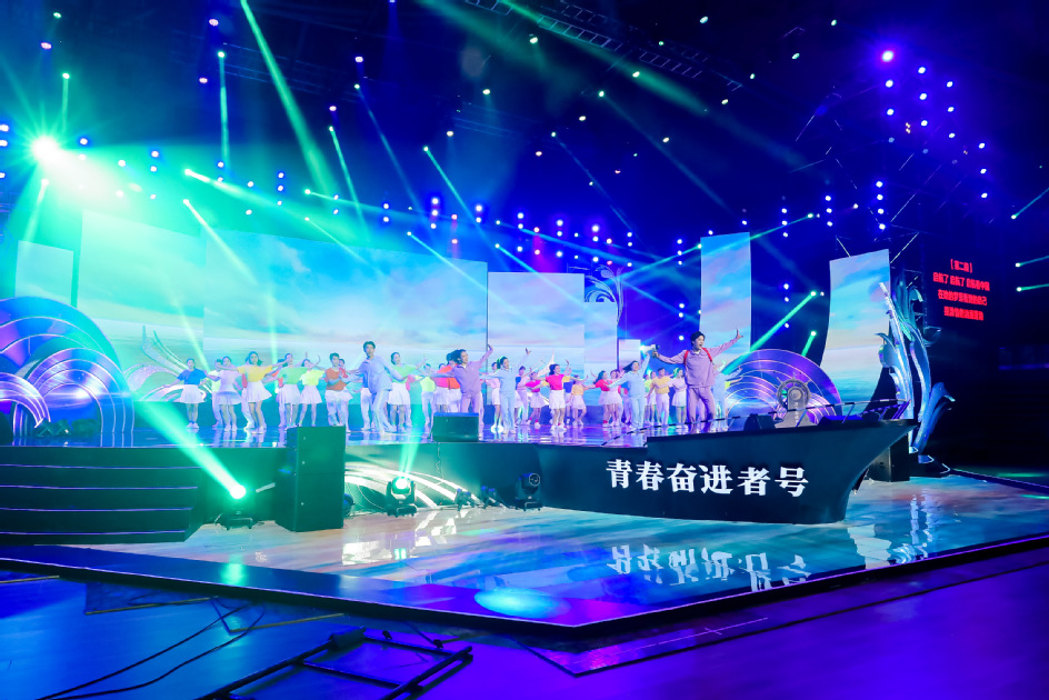在盛典现场,我校130多名演职人员圆满完成了闭幕式开场秀《启航看中国》、歌舞《化开春色暖人间》、组歌《无名之辈》《和光同尘》《骄傲的少年》以及朗诵《无奋斗不青春》、尾声《我们的歌》等7个节目的表演,出色完成了演出任务,赢得了阵阵掌声和喝彩。200名方阵演员在现场的拉歌和互动环节中,用整齐悠扬的歌声、澎湃响亮的口号展现了福工学子青春昂扬的精神风貌。