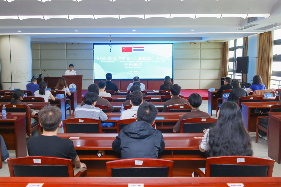 5月26日上午,学校承办的2025年中泰“中文+职业技能”培训班在旗山校区开班。副校长刘国买出席开班式,泰国罗勇技术学院代表朱蒂玛·卡波尔、那空沙旺技术学院代表奇拉萨克·桑吉兰,苏州市吴江经济技术开发区组织人事和社会保障局副局长金华,苏州和信精密科技股份有限公司人力资源部等单位有关负责人,人文学院相关人员以及全体泰籍学员参加仪式。