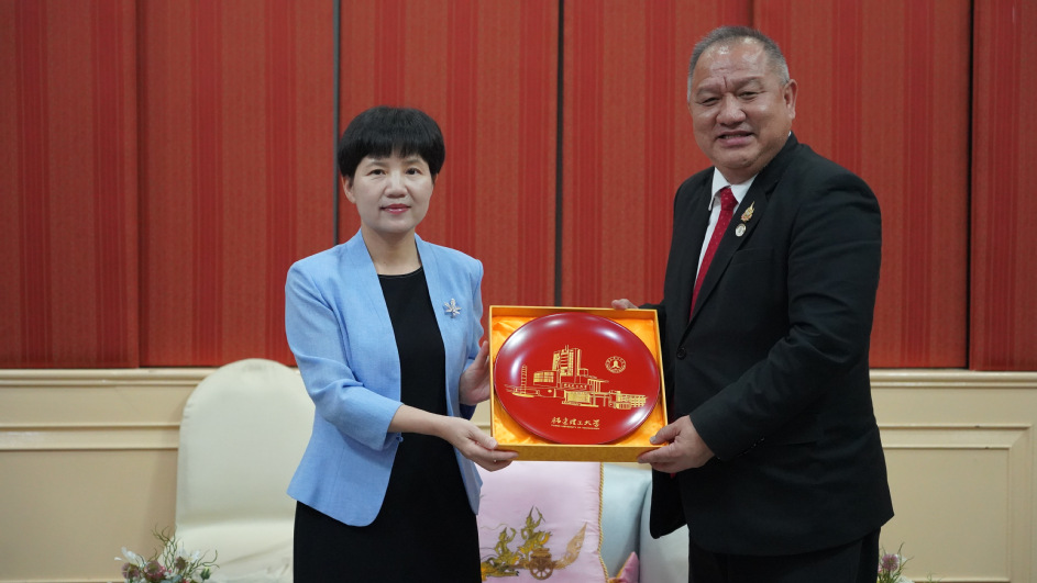 向泰国教育部职业教育委员会秘书长尤萨蓬·韦努科塞赠送纪念品
