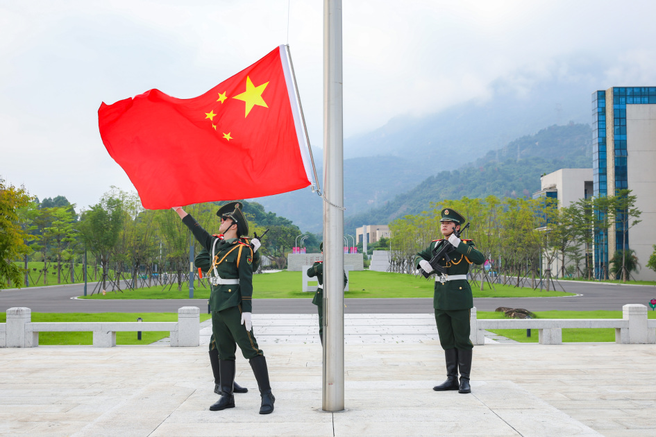 10月1日上午,学校在旗山校区和鼓山校区同步举行庆祝中华人民共和国成立76周年升国旗仪式。鲜艳的五星红旗伴随着雄浑嘹亮的国歌声冉冉升起。学生代表们深情朗诵《复兴路上的青春力量》、高唱《歌唱祖国》,抒发了新时代青年的爱国情感,展现福工学子矢志报国、挺膺担当的精神风貌。