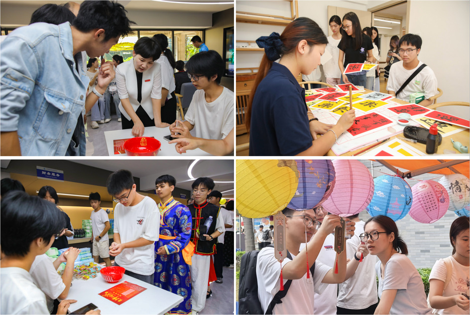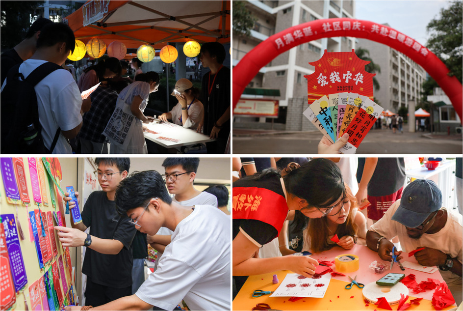 各单位也纷纷组织开展了丰富多彩的庆祝活动,让师生们在欢乐祥和的浓郁氛围中欢度节日,在潜移默化中厚植家国情怀。在“一站式”学生社区服务中心,留校师生共同参与“月满华诞,情暖社区”主题游园会,在猜灯谜、诗词飞花、巧手包饺、飞盘九宫格、翰墨书法、棋弈对垒、博饼等游戏中沉浸式感受传统节日氛围,在温馨团聚中体会“社区如家”的温暖,现场欢声笑语、情意融融。在旗山校区餐厅,人文学院组织的主题快闪活动吸引众多学生参与,多民族学子在现场共同唱响《我和我的祖国》,用歌声表达中华儿女对伟大祖国的深情礼赞。在海外教育学院·帕特雷国际工程师学院,中外学生在猜灯谜、做月饼、投壶、剪纸等活动中加深理解、增进友谊,感受中华传统文化魅力。(学生工作部、各二级学院供稿)