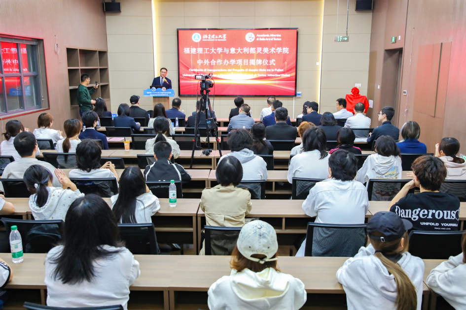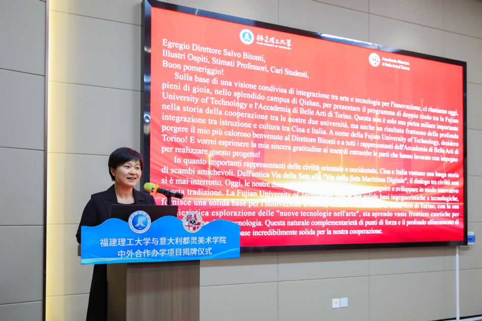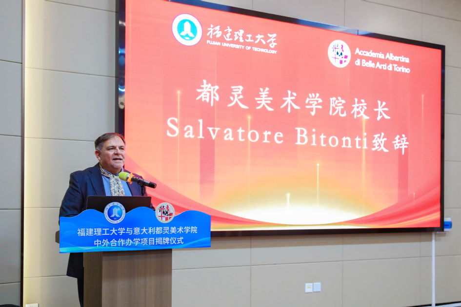 11月17日下午,福建理工大学与意大利都灵美术学院中外合作办学项目揭牌仪式在旗山校区南区举行。都灵美术学院校长Salvatore Bitonti,福建理工大学副校长吴琛出席仪式。学校机关部处、相关二级学院负责人及师生代表参加仪式。