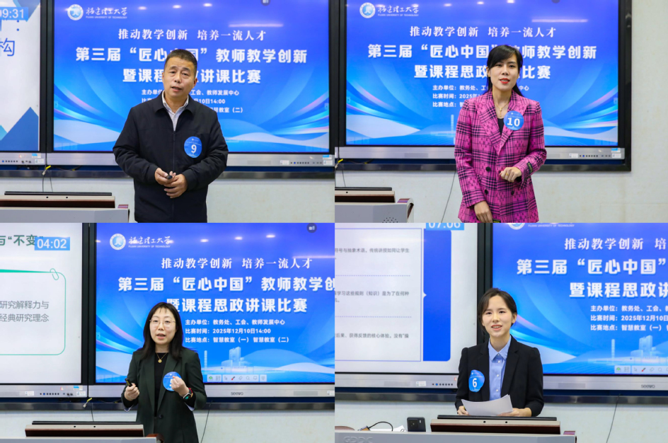 大赛围绕“推动教学创新,培养一流人才”主题,设置工科组、文科组(含基础课程、课程思政)两大组别。自赛事启动以来,历经学院预赛选拔推荐、校级评审等环节,20支优秀团队脱颖而出、晋级现场决赛。在决赛现场,参赛教师们聚焦教学过程中的“真问题、真难点”,重构教学内容、重组教学方法、重设教学环境,展现了个人教学风采。评委们从教学理念创新性、教学内容精准度、问题导向鲜明度、创新举措可行性等多个维度进行了综合点评。