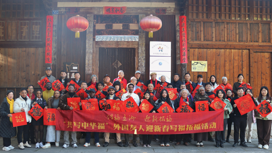 1月7日,由我校与中国名家联合书画艺术院联合主办、中国福字展组委会承办的“传福五洲 迎新拓福——共写中华福”迎新春写福拓福活动在旗山湖古厝举行。副校长吴琛,中国名家联合书画艺术院艺术家,学校国际交流处、海外教育学院负责人,以及留学生代表等参加活动。